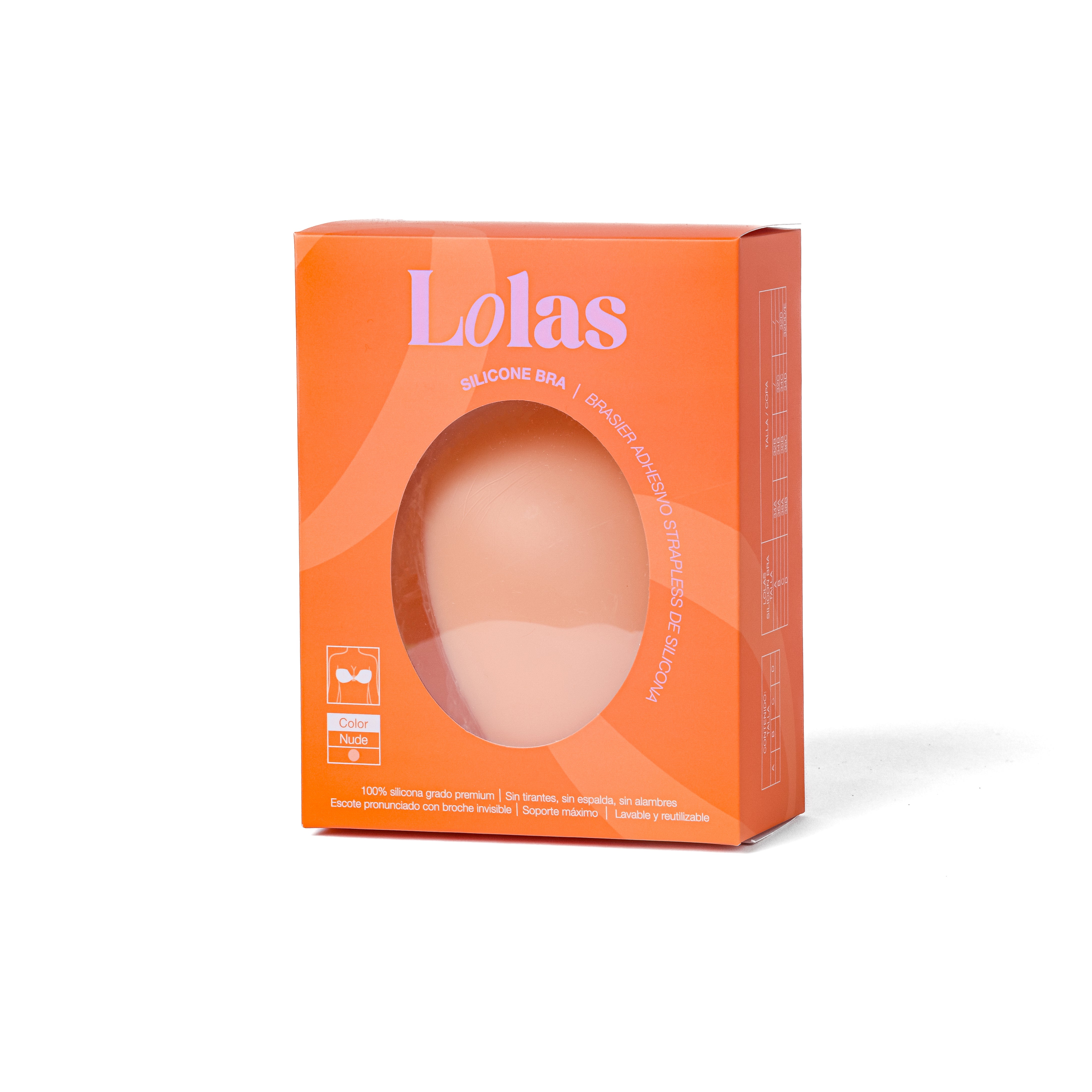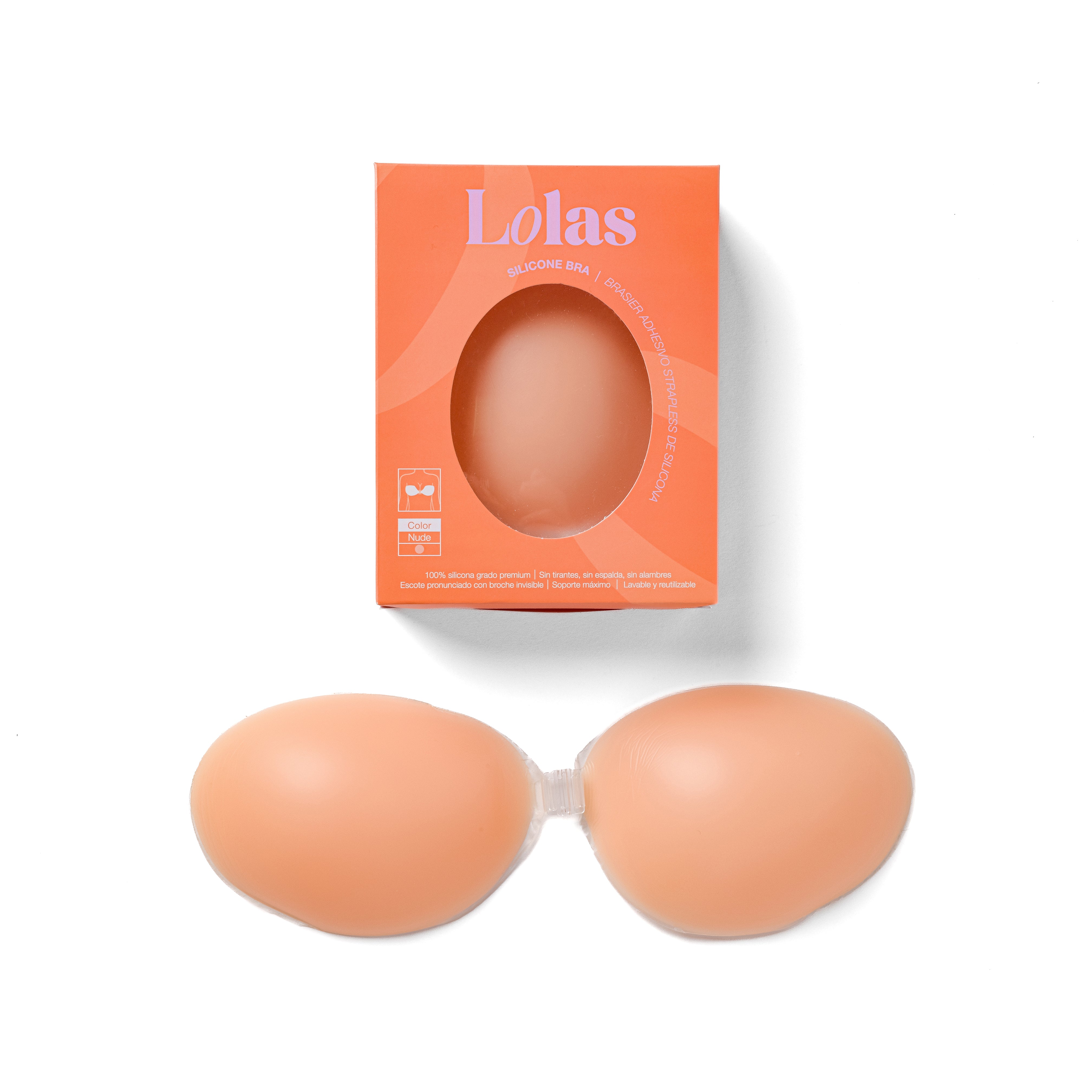 El LOLAS Silicone Bra es un brasier invisible en color nude, hecho de silicona de grado premium. Sin tirantes, sin espalda y sin alambres, ofrece realce natural y comodidad con un adhesivo que se adhiere a la piel para mantenerse en su lugar.