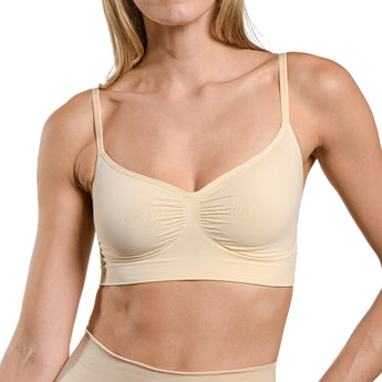 Un bralette moldeador sin varillas que brinda soporte y comodidad, con un diseño sin costuras y espalda ancha.